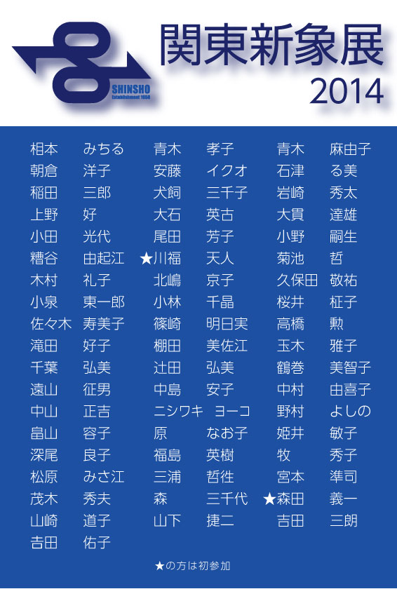 関東在住の新象作家協会に関わるメンバーによる「関東新象展2014」が、市ヶ谷の山脇ギャラリーで12月4日(木)〜12月10日(水)【※12月7日(日)は休館】のスケジュールで開催されます。