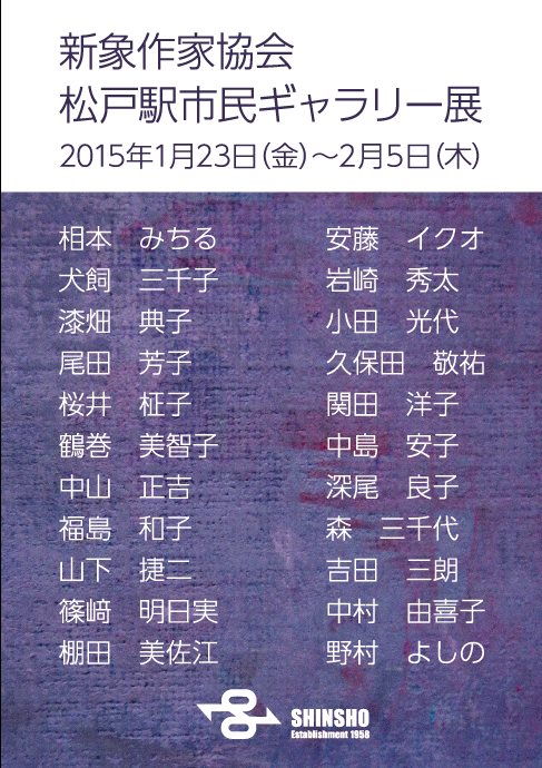 現在、JR常磐線,新京成線松戸駅のコンコースにある「松戸駅市民ギャラリー」にて、関東の新象作家協会の会員を中心メンバーとした「新象作家協会|松戸駅市民ギャラリー展」を開催しています。